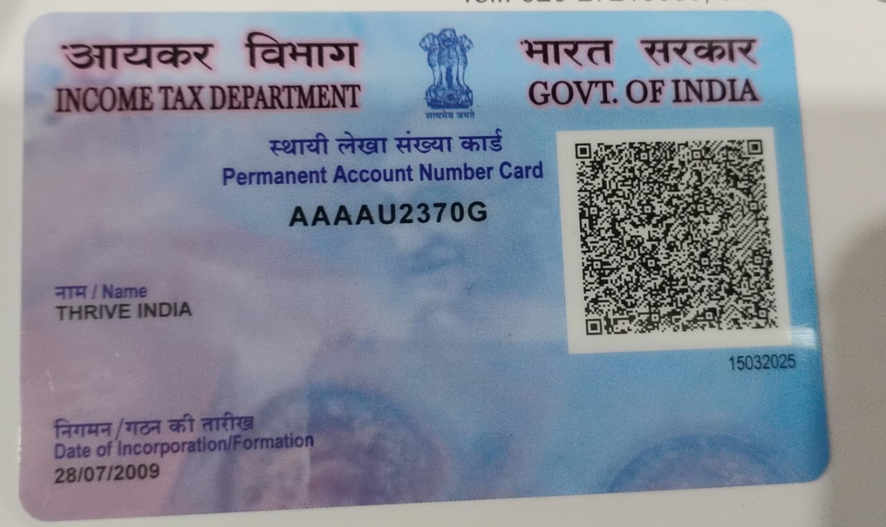 • Thrive India is registered under the Societies Registration Act, 1860 as a not-for-profit organization.